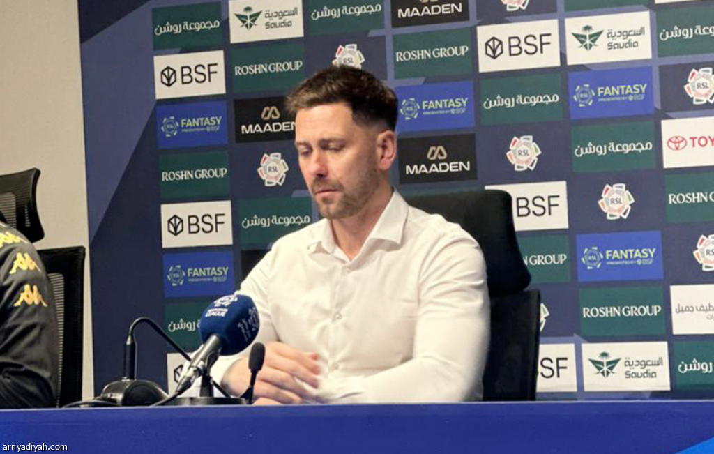 ديس باكينجهام مدرب الخلود خلال مؤتمر صحافي بعد مباراة الهلال، الأربعاء تصوير: عبد العزيز حمد