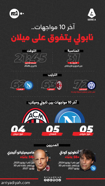 آخر 10 مواجهات .. نابولي يتفوق على ميلان
